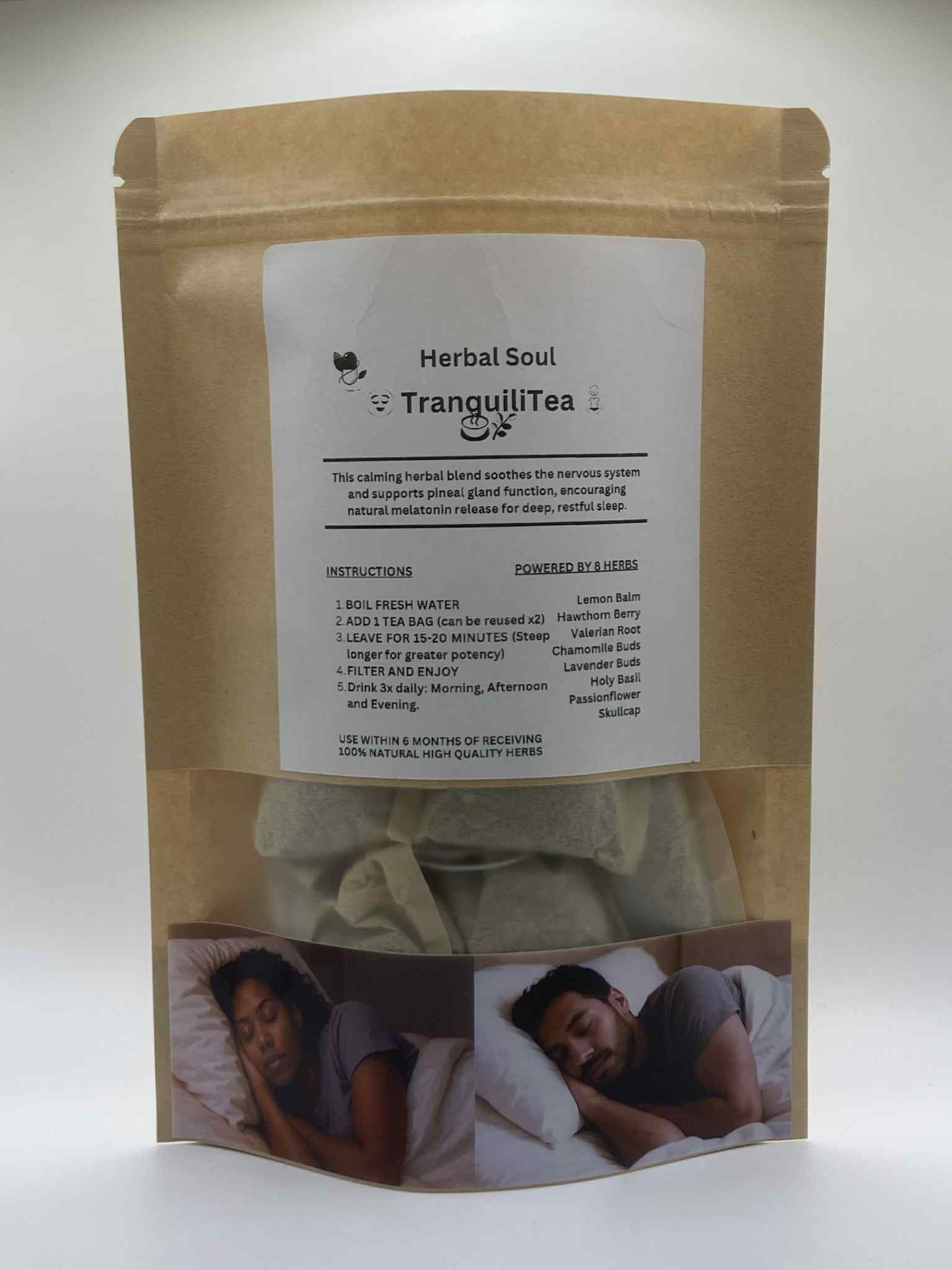 Slow down and settle into the moment with Herbal Souls’ Tranquili-Tea, a thoughtfully crafted herbal infusion designed to support relaxation and a calm nighttime routine. This soothing blend brings together traditionally used botanicals that complement moments of rest, reflection, and winding down at the end of the day.